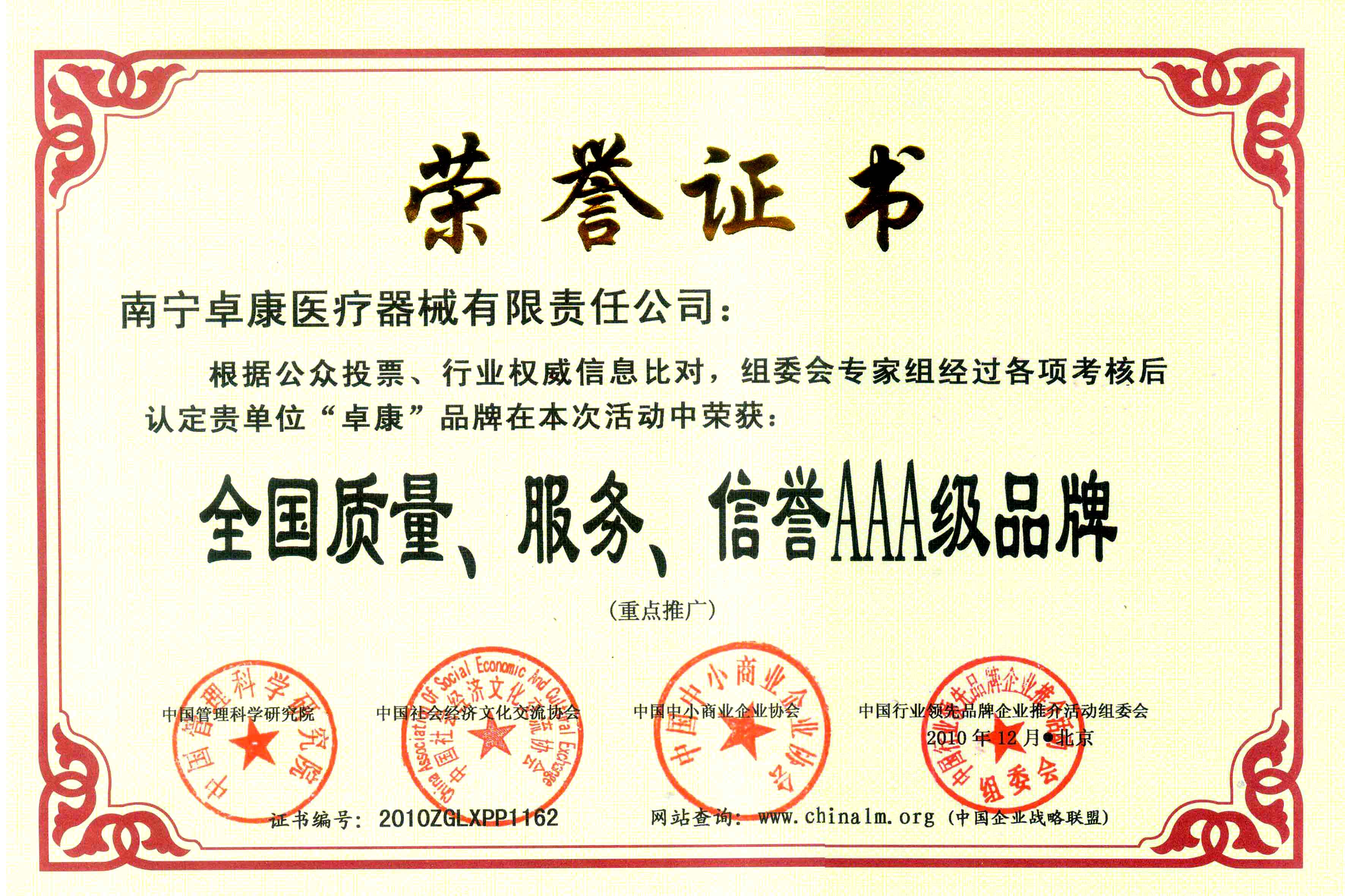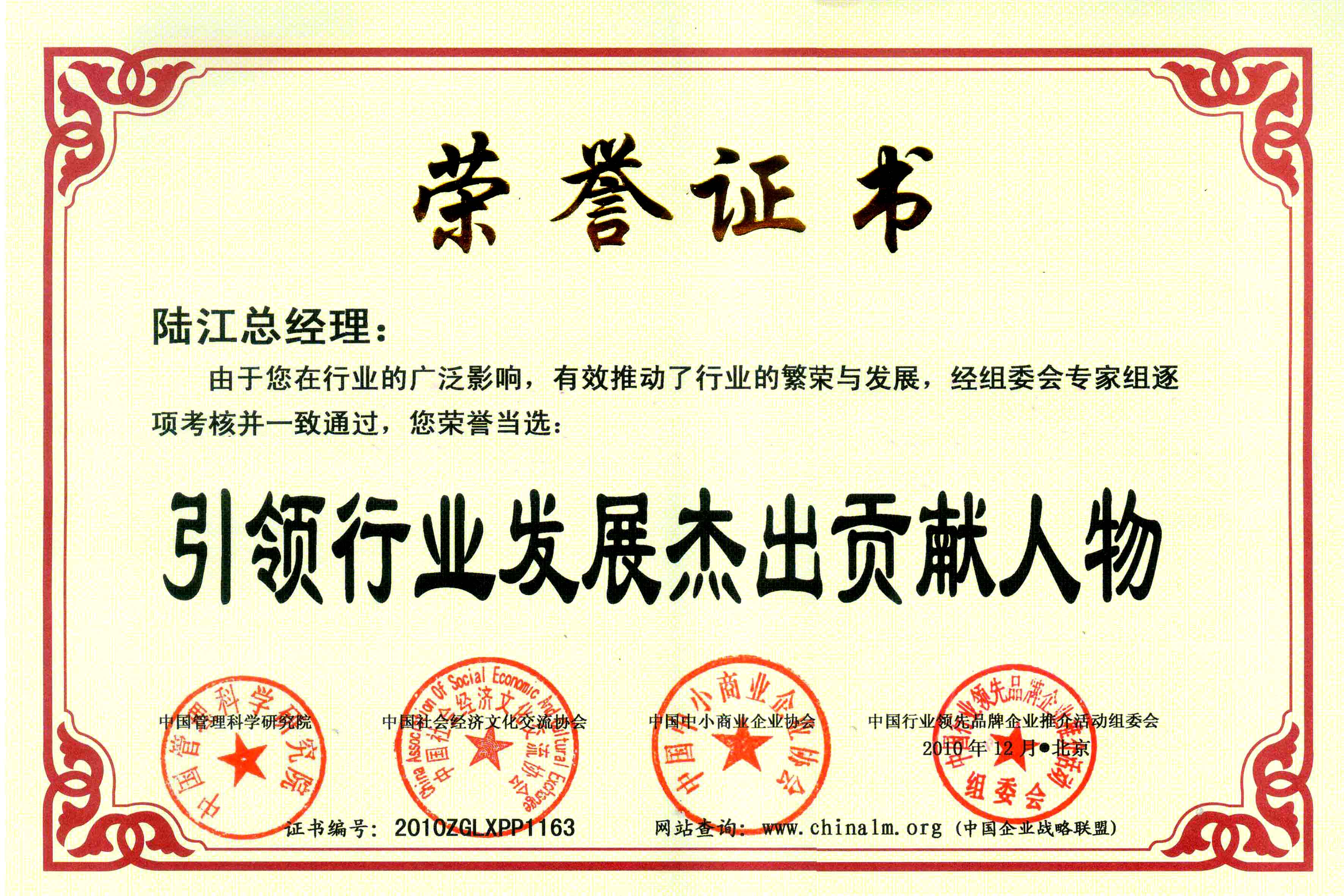 陸江榮獲引領(lǐng)行業(yè)發(fā)展杰出貢獻(xiàn)人物證書 --------卓康公司榮獲全國質(zhì)量、服務(wù)、信譽AAA級品牌證書