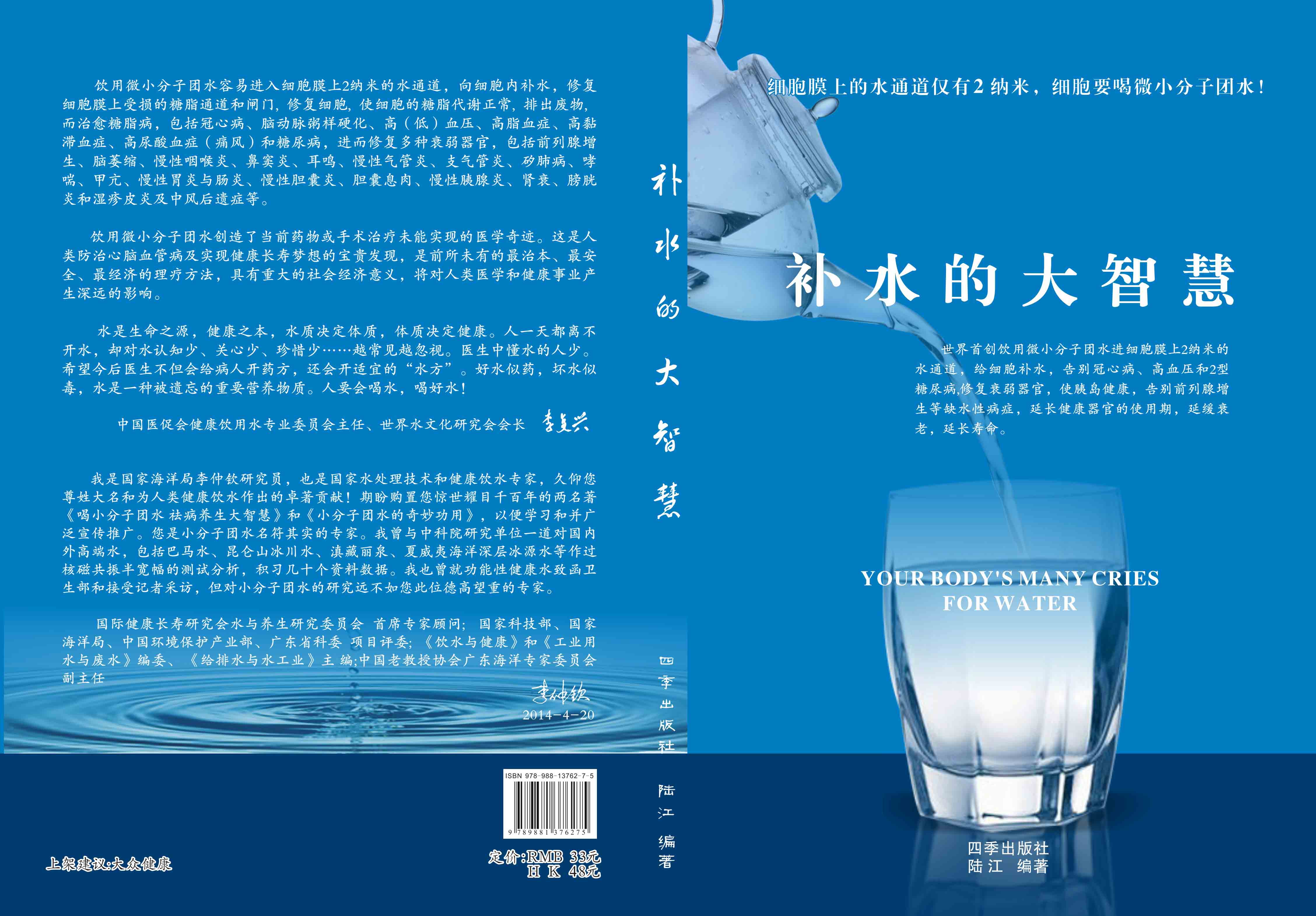 《補水的大智慧》,由陸冮編著,定價33元,四季出版社2014年10月出版,16開彩印內(nèi)頁P224,書中有15年來代表性用戶的反饋。[企業(yè)文化]欄可下載最新書稿。