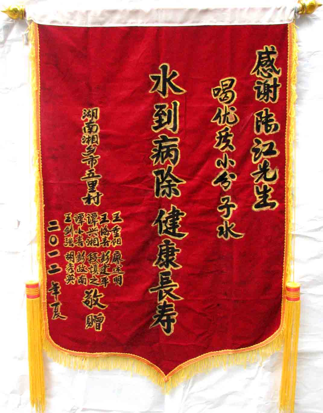 2015年潘志山主動寫一篇感想《我以親身實踐打破了冠心病、高血壓、糖尿病需終生服藥的神話》說堅持按發(fā)明人陸?江先生倡導(dǎo)的用已饑方食的方法合理膳食,我的健康狀況越來越好:糖尿病造成的視力下降有了明顯的恢復(fù),末梢神經(jīng)炎導(dǎo)致的指端潰爛現(xiàn)在完全痊愈,痔瘡自從飲用微小分子團(tuán)水半年后就再也沒有復(fù)發(fā)過,氣滯血瘀造成的嘴唇暗紫也漸漸變得紅潤,舌下靜脈黑紫消失,足背的動脈由以前的隱約感到跳動現(xiàn)在變得清晰有力。[13]潘先生披露的訣竅,一是飲用微小分子團(tuán)水給脫水細(xì)胞補水,二是已饑方食”養(yǎng)生智慧,患者都能做到。